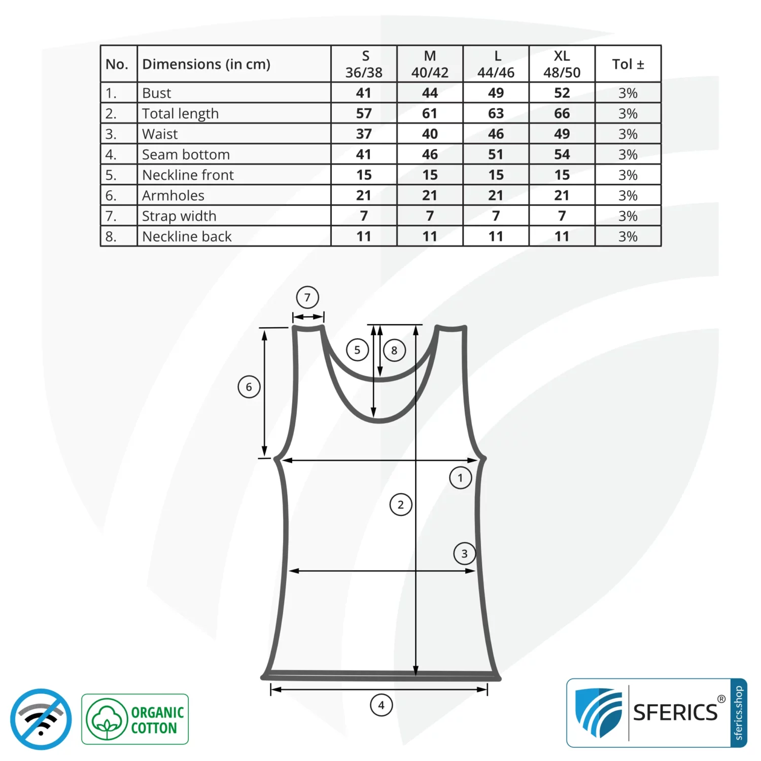 This tank top can be used in almost every situation. Whether at home, on vacation or protected on a business trip – the shielding tank top always fits. Worn “over it” or “under it” under e.g. a blouse. And what about sleep – yes, of course, that is also possible without any problems. Lying directly on the skin as a top part of pajamas or pajamas.