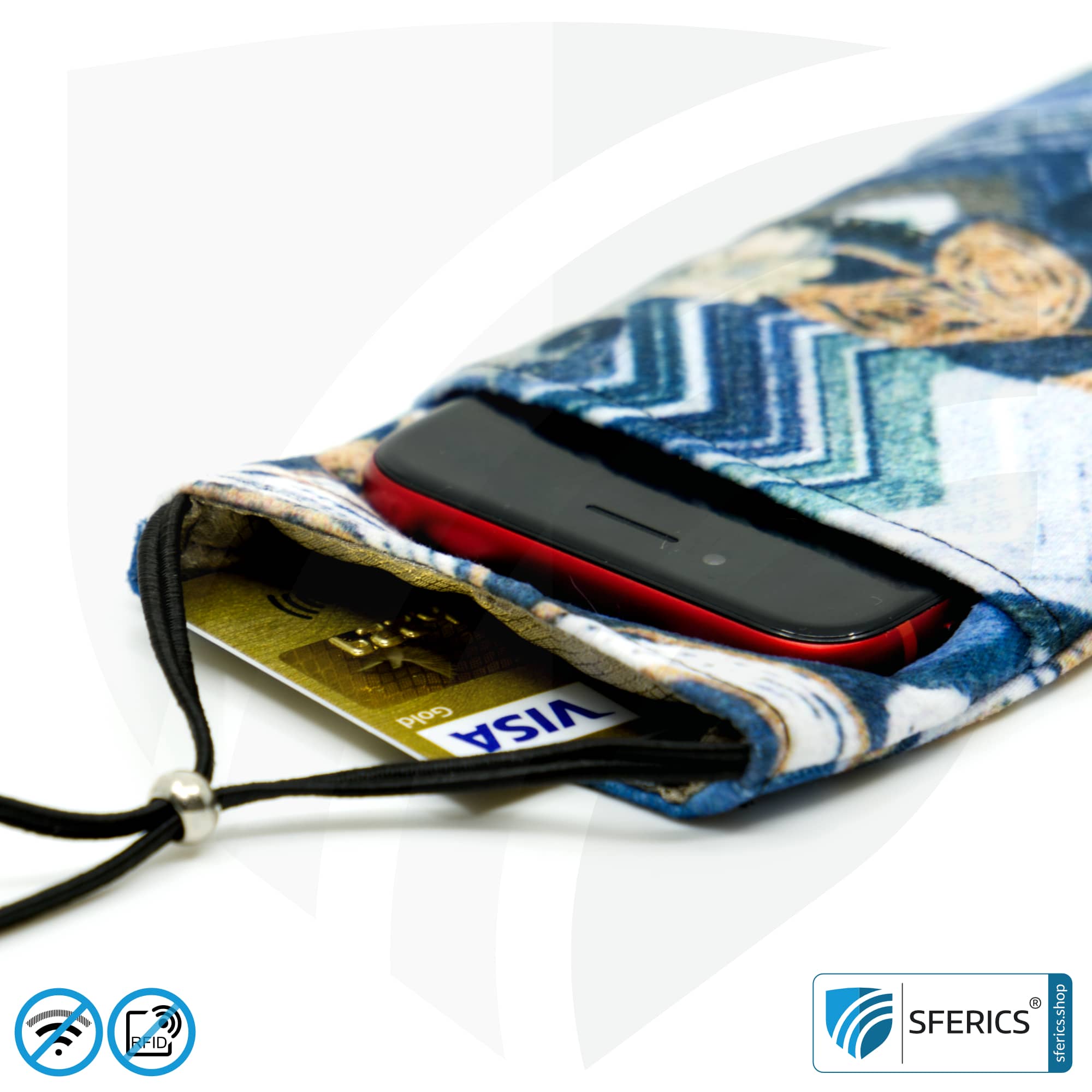 In addition to our exclusive reversible mobile phone pocket, this trendy cellphone bag captivates with its unmistakable style. With this FELIX.blue mobile phone case eWall for iPhone, Samsung, Huawei, etc. with electro smog radiation protection including 5G. 3in1 Protection incl. RFID data protection. The FELIX.blue unique design makes this cell phone bag a real eye-catcher and also a real gem.