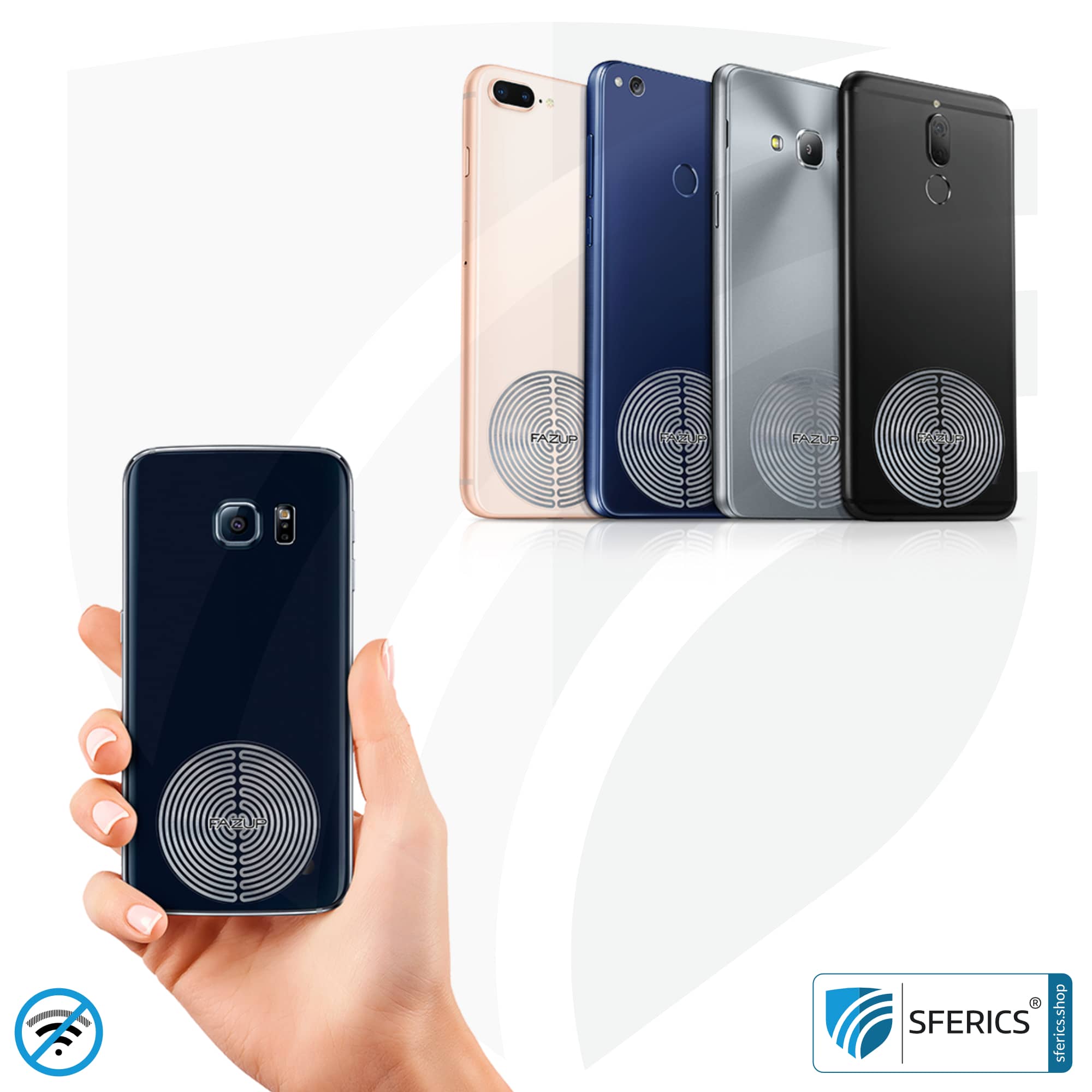 FAZUP is a passive antenna patch for sticking to the back of the phone. If this is glued to the millimeter, FAZUP regulates or reduces the mobile phone’s produced mobile phone radiation and thus protects against unnecessarily high RF radio radiation.