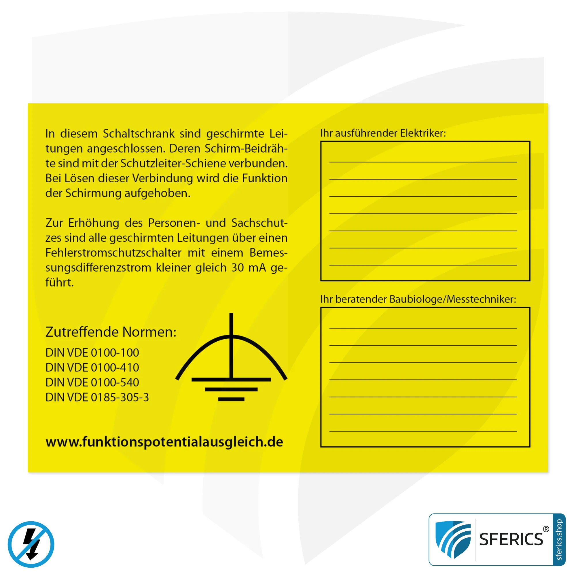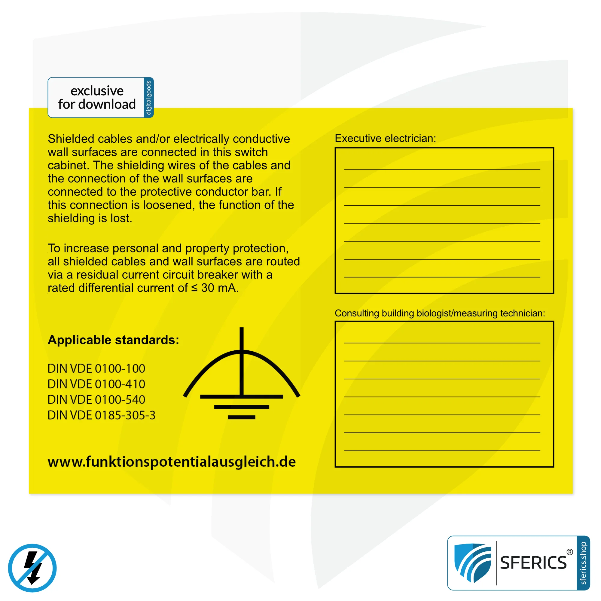 This labeling serves as information and quality assurance for the existing shielding installation for subsequent electricians and technicians. This FEB note is an optional way to keep this essential information available and to mark the affected circuits.