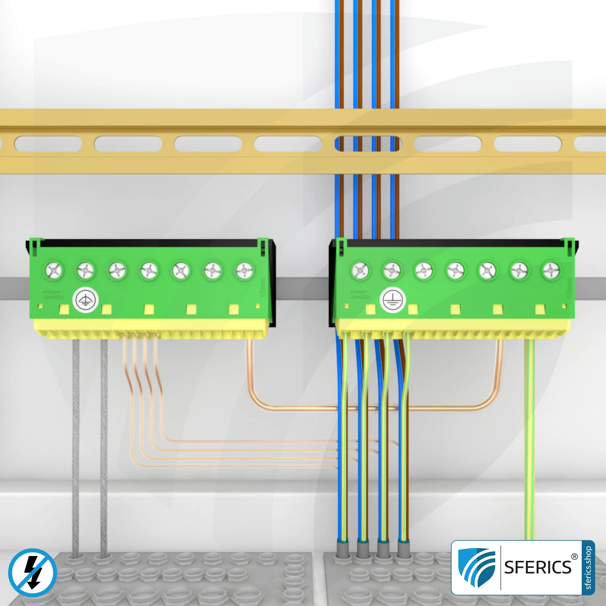 Shielded cables and/or electrically conductive wall surfaces are connected in this switch cabinet. The shielding wires of the cables and the connection of the wall surfaces are connected to the protective conductor bar. If this connection is loosened, the function of the shielding is lost.