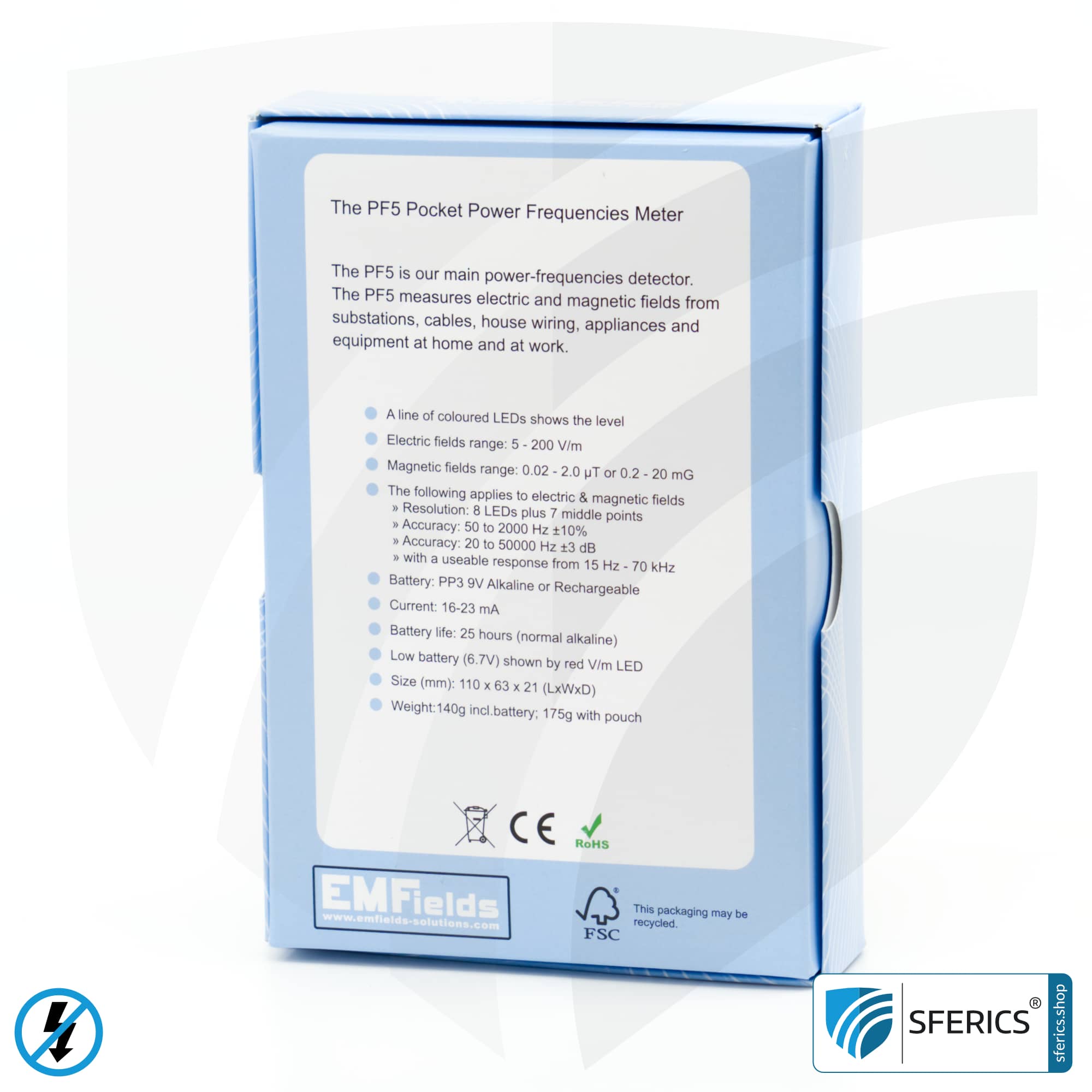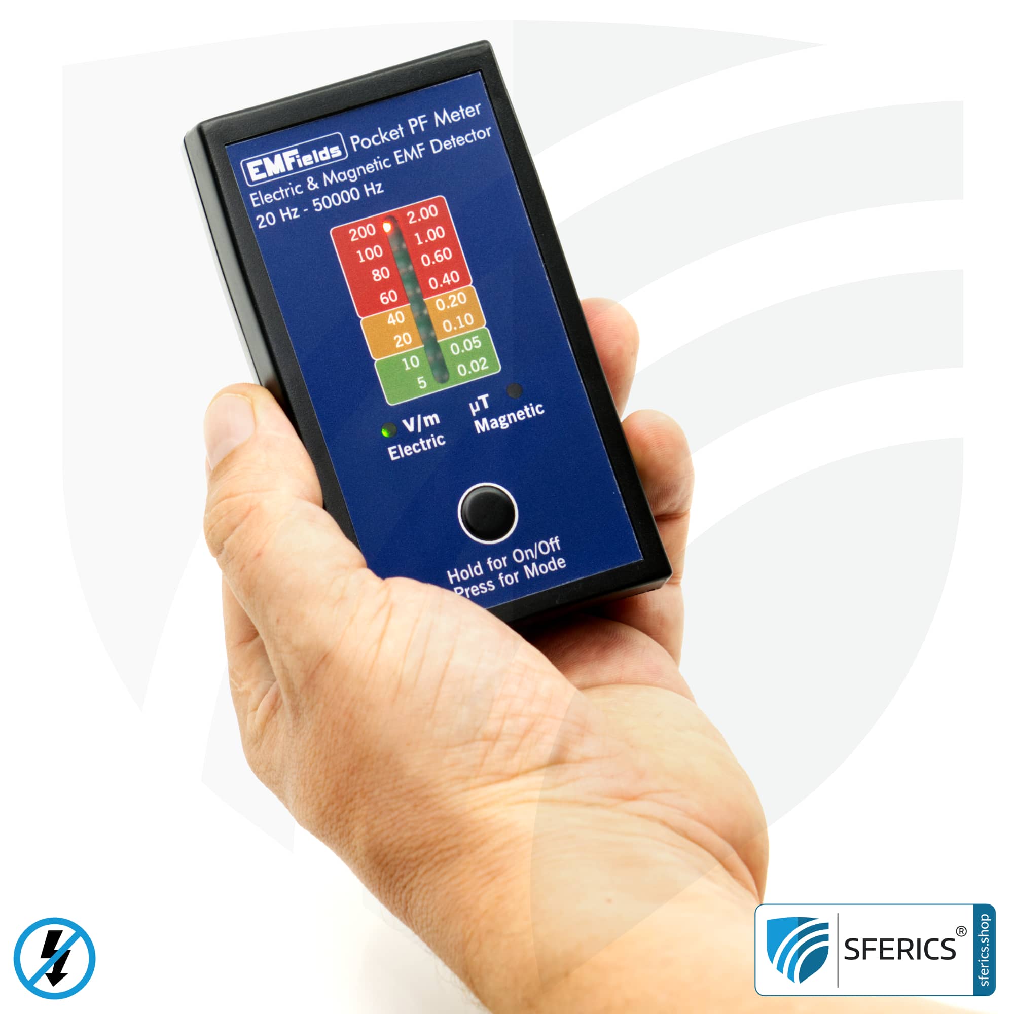 The Pocket PF5 Meter is an easy to use electrosmog meter for the low frequency (LF) range. It is reliable and facilitates the detection of alternating magnetic and alternating electric fields. It is a valuable tool for detecting a restful sleeping place.