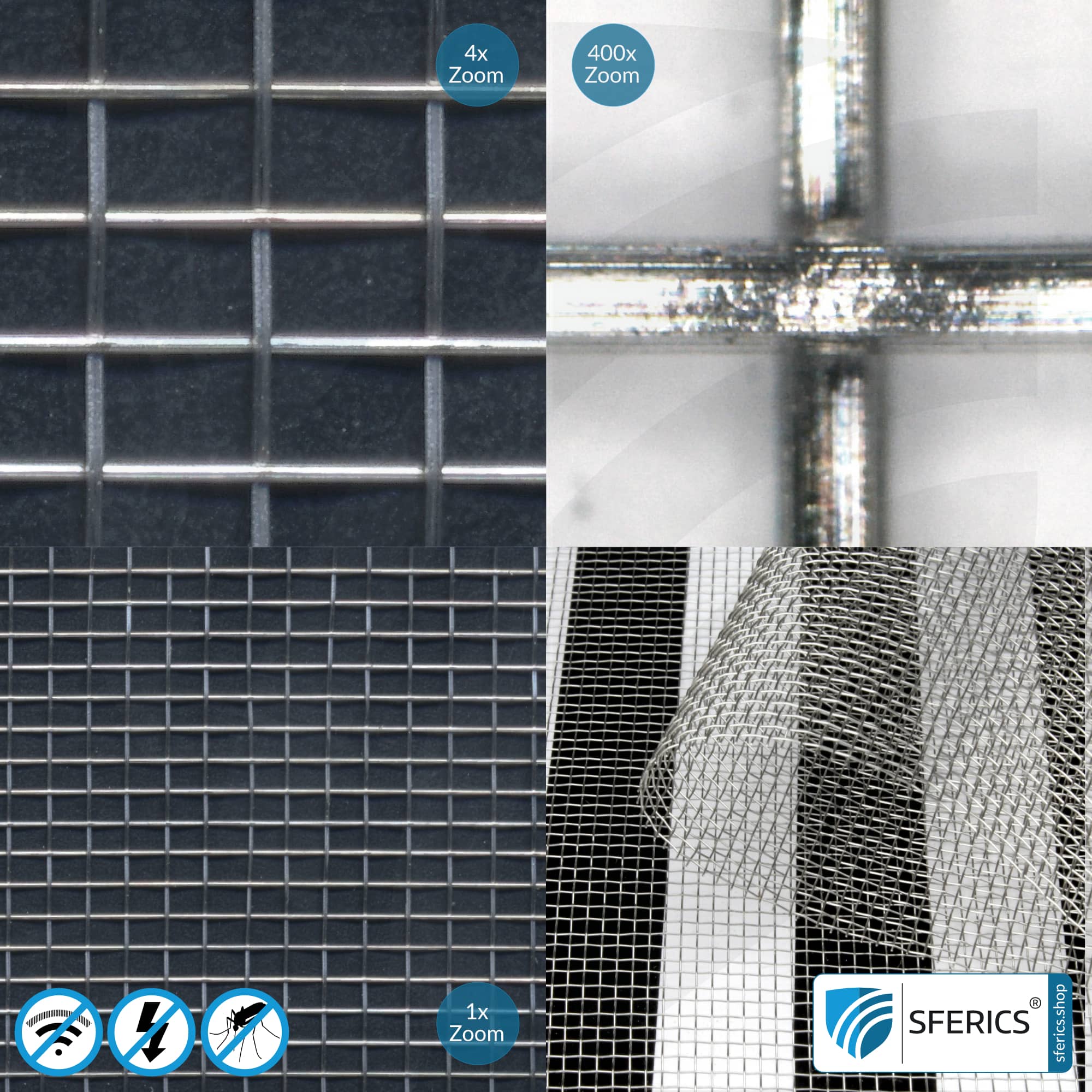This V4A10 stainless steel mesh is a finely-woven and corrosion-resistant stainless steel mesh. It can be effectively installed to provide basic protection against electrosmog from radio (HF) and alternating fields from the power supply, for example (LF).