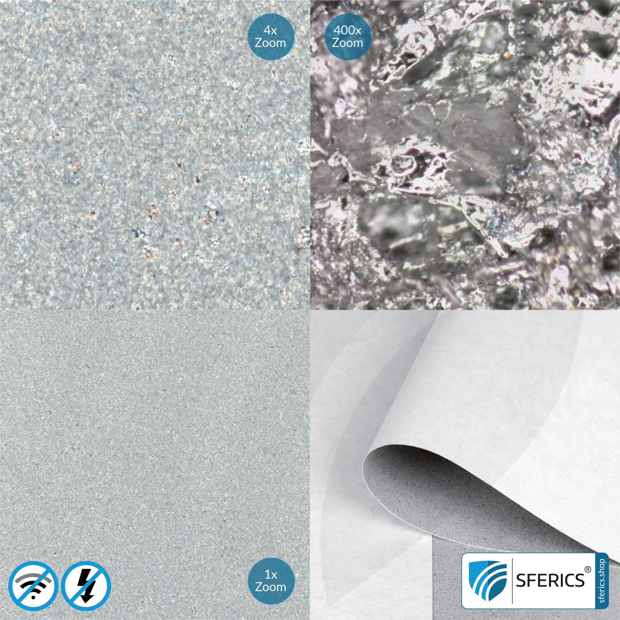 Shielding wallpaper ECO P60 for indoor use. With this shielding fleece against electrosmog HF + LF the effective and cheap radiation protection against electrosmog is possible. Shielding efficiency up to 99,9999% (60 dB). Width 70 cm and 90 cm. 5G ready!