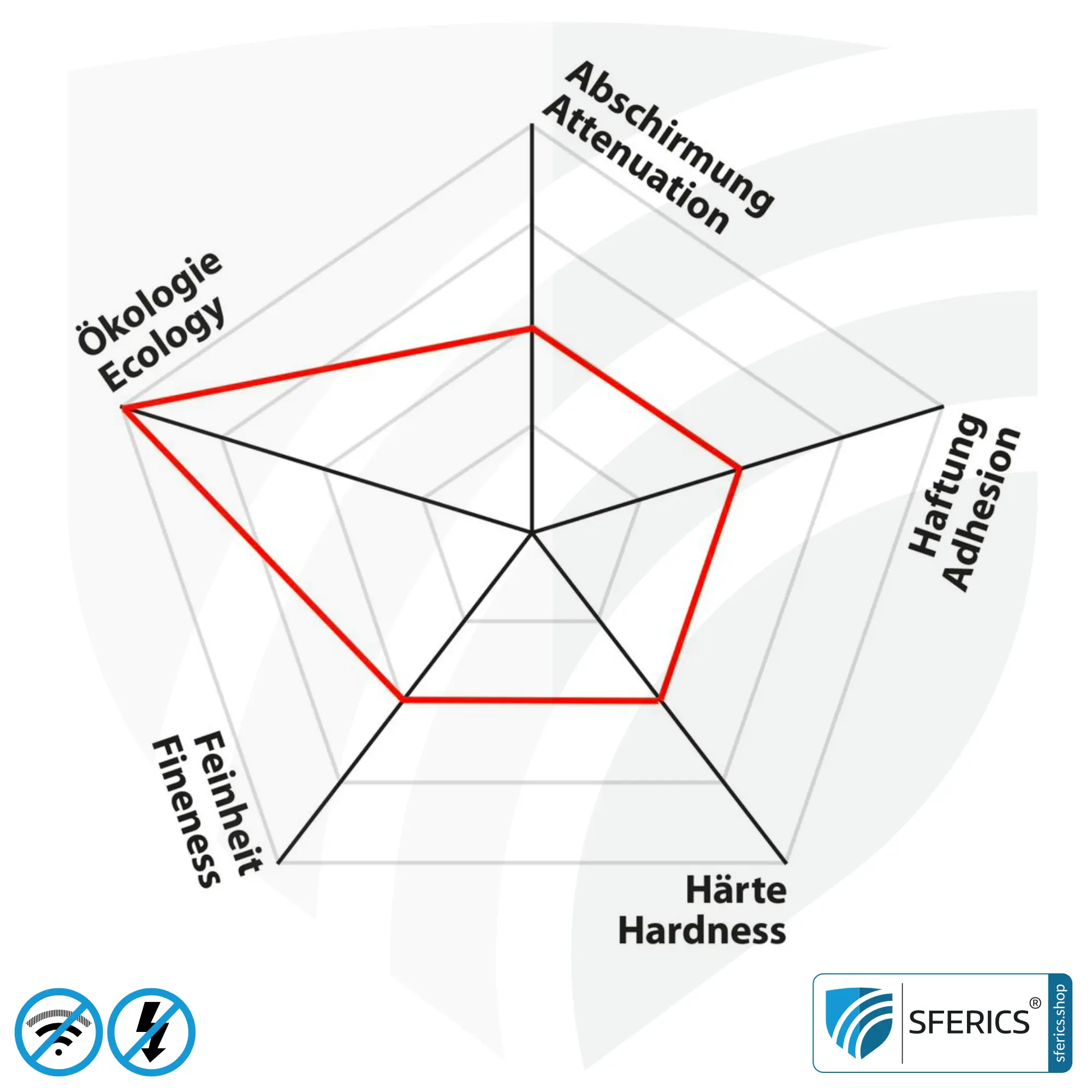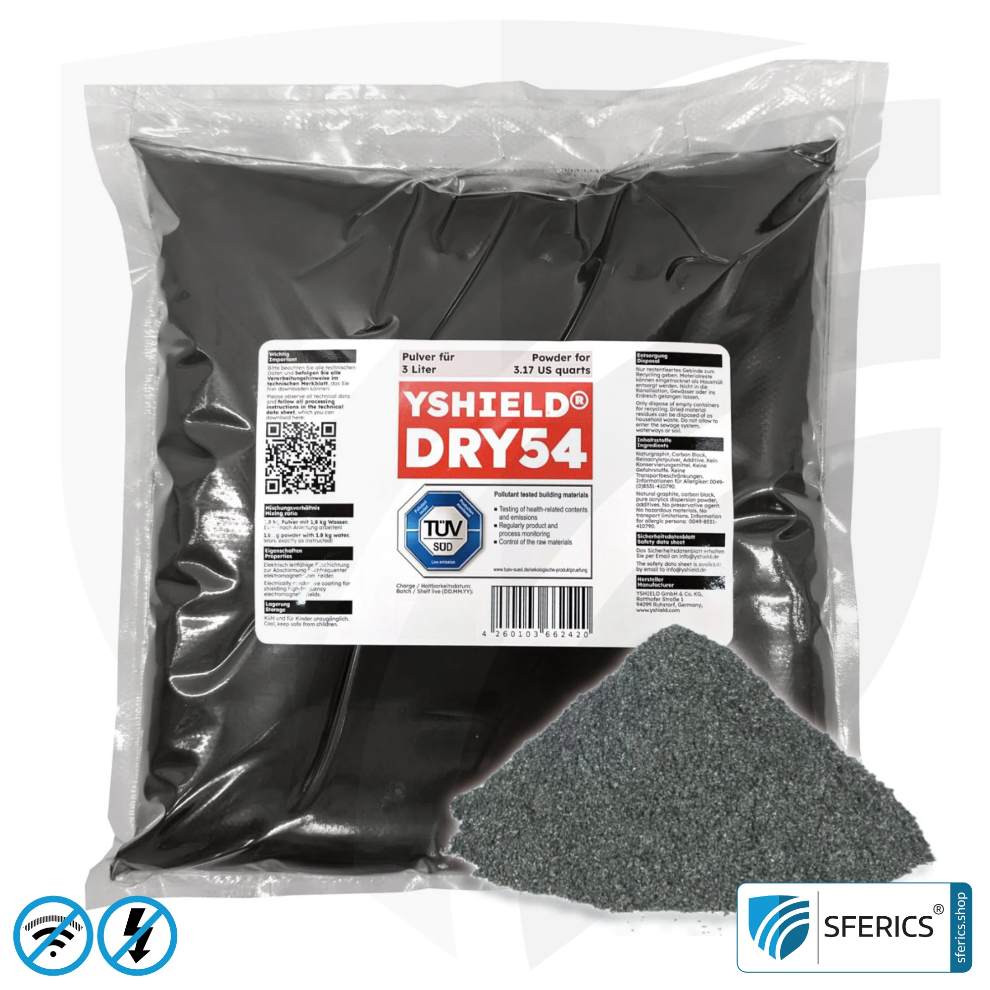 DRY54 is a shielding paint in powder form for shielding high-frequency electromagnetic fields (HF) and low-frequency alternating electric fields (LF). This special paint shines with all-round properties! DRY54 is breathable, plasticiser-free, low-emission and contains no preservatives. Furthermore, this shielding paint convinces with very good physical and chemical properties and at the same time very high ecology.