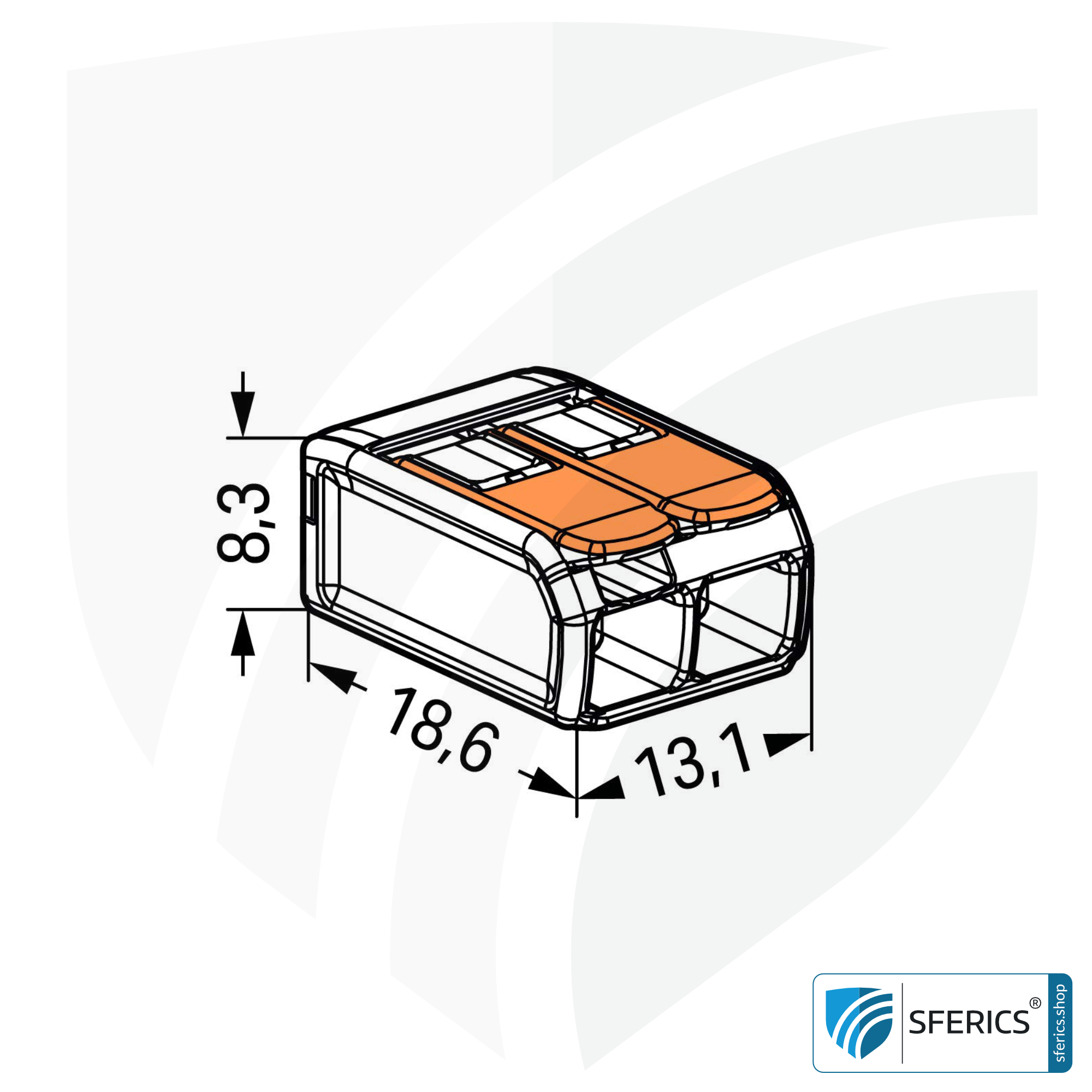 WAGO compact 221 series splicing connector, model 221-412, for 2 conductors. Ideal for connecting the drain wire of the shielded electrical cable to the shielded flush-mounted box or cavity wall box. In addition, basically an ingenious helper for the connection of LED lamps, speakers, etc..