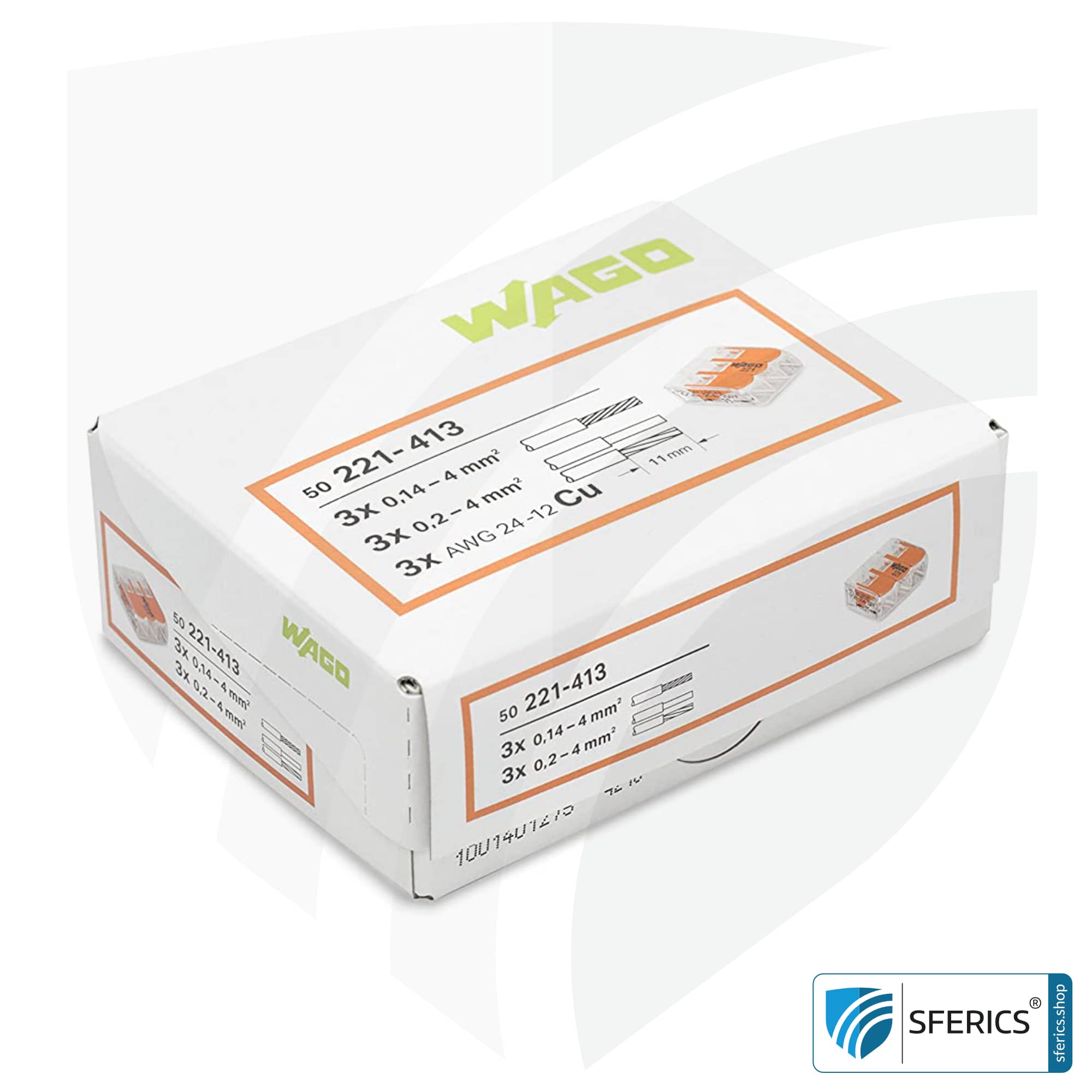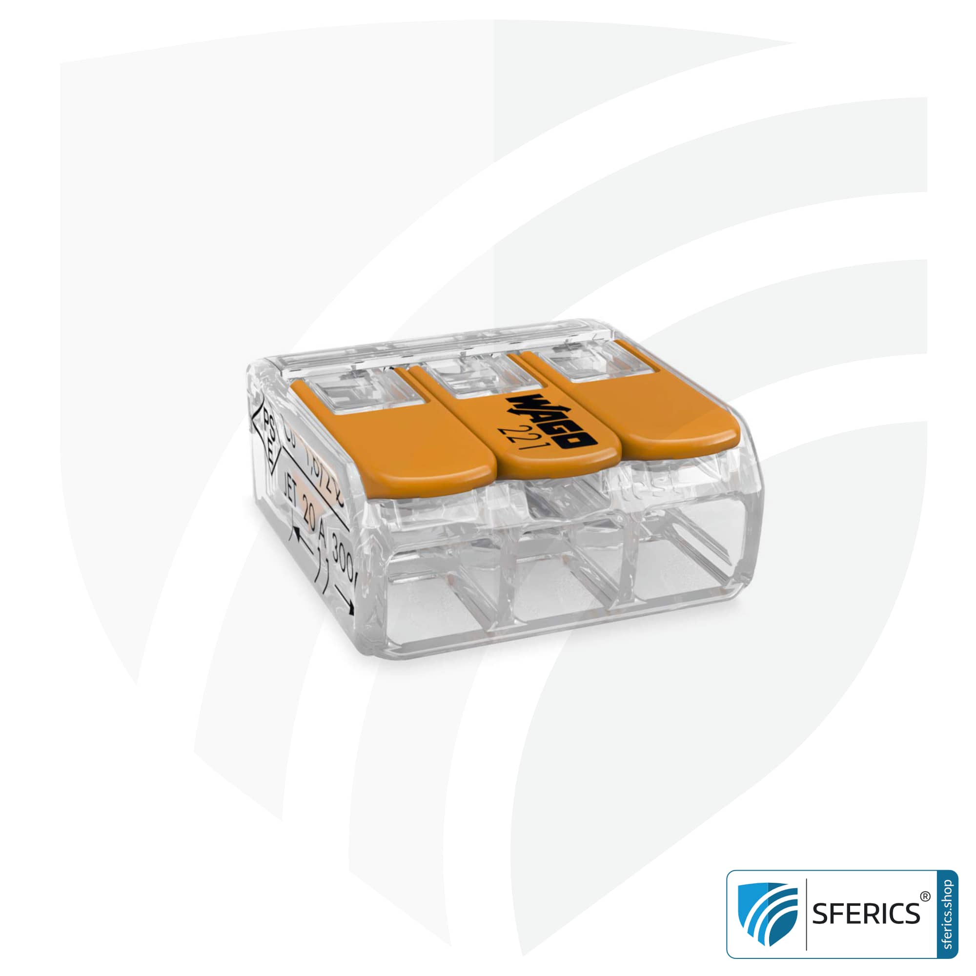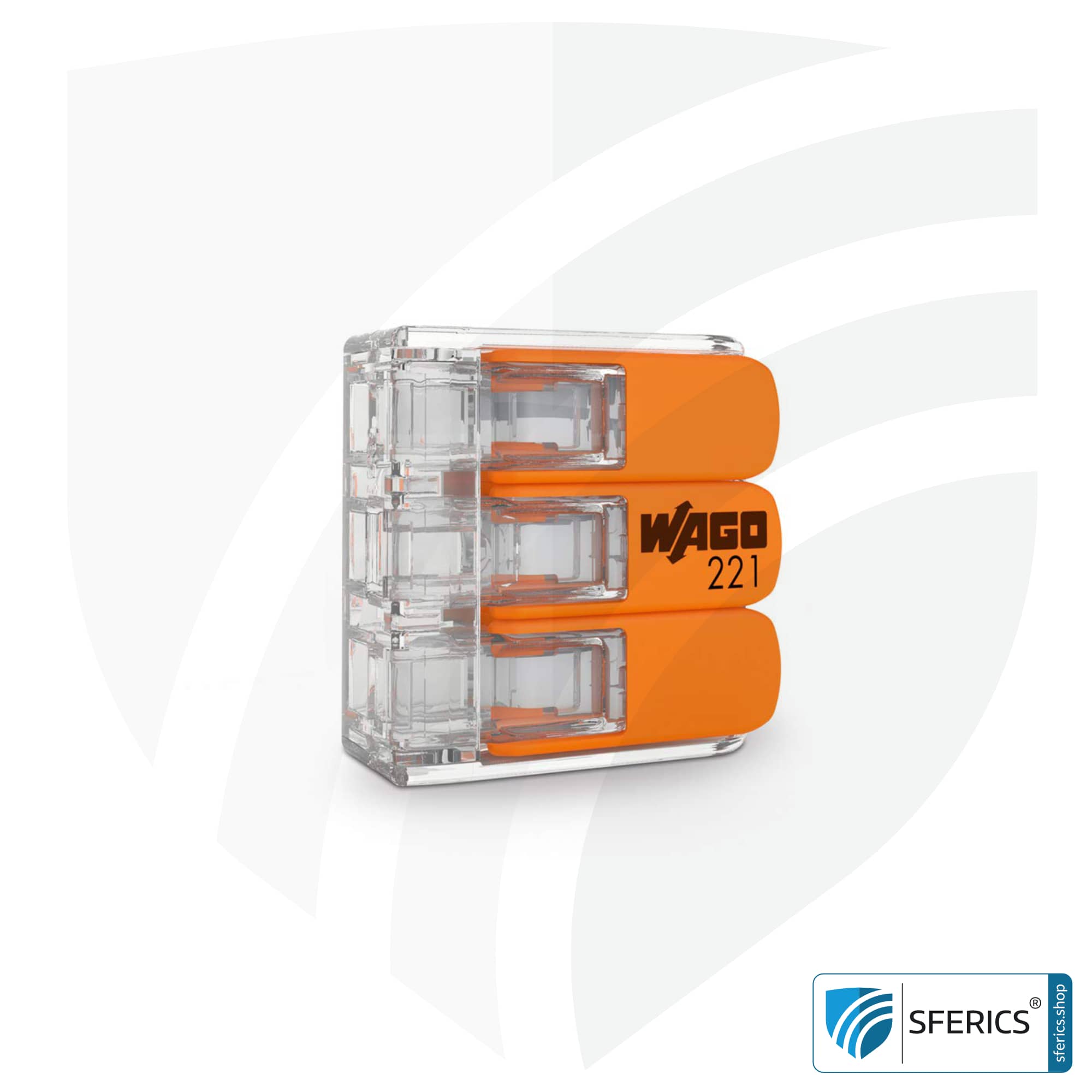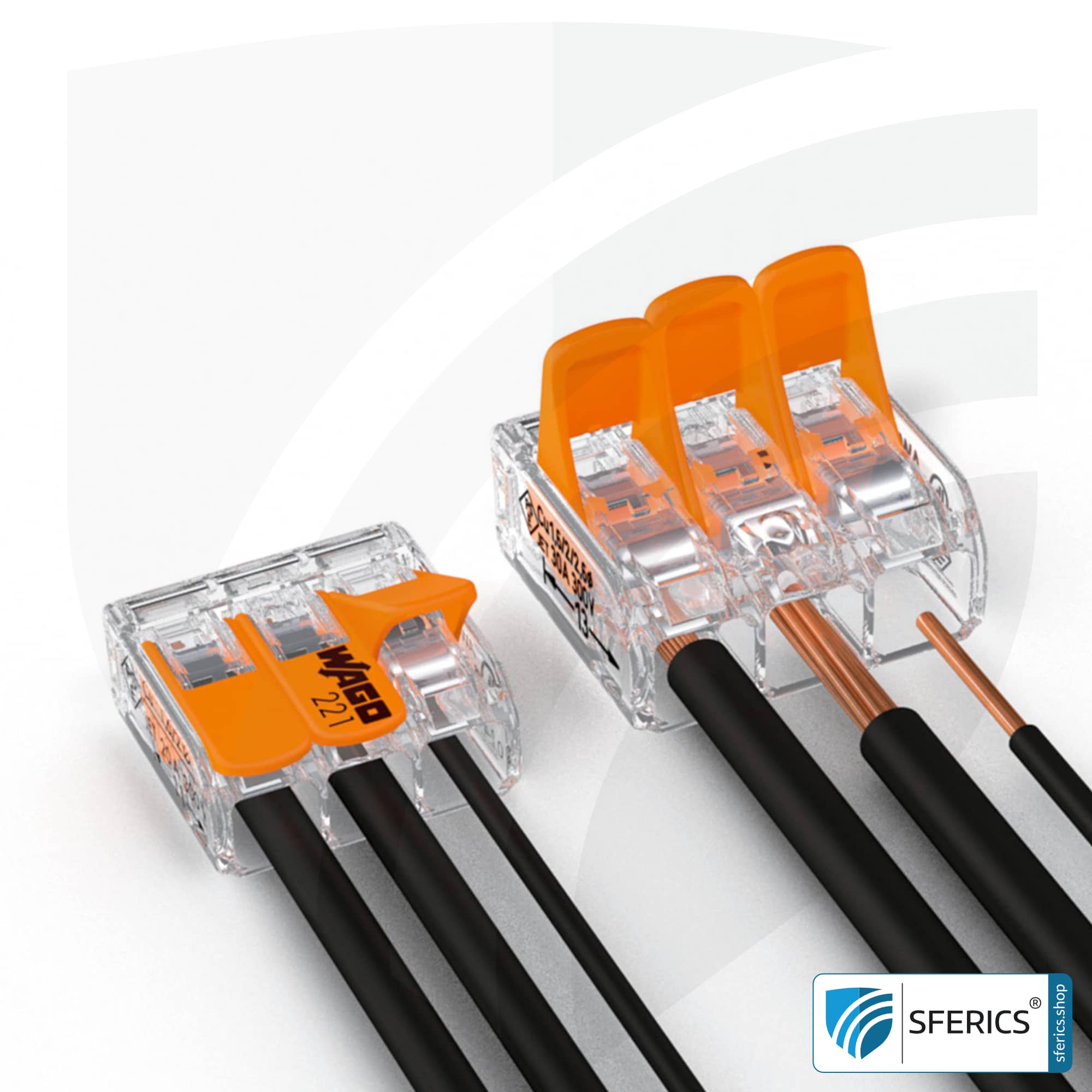 WAGO compact 221 series splicing connector, model 221-413, for 3 conductors. Ideal for connecting the drain wire of the shielded electrical cable with the shielded flush-mounted socket or cavity wall socket. In addition, basically a brilliant helper for the entire electrical installation.