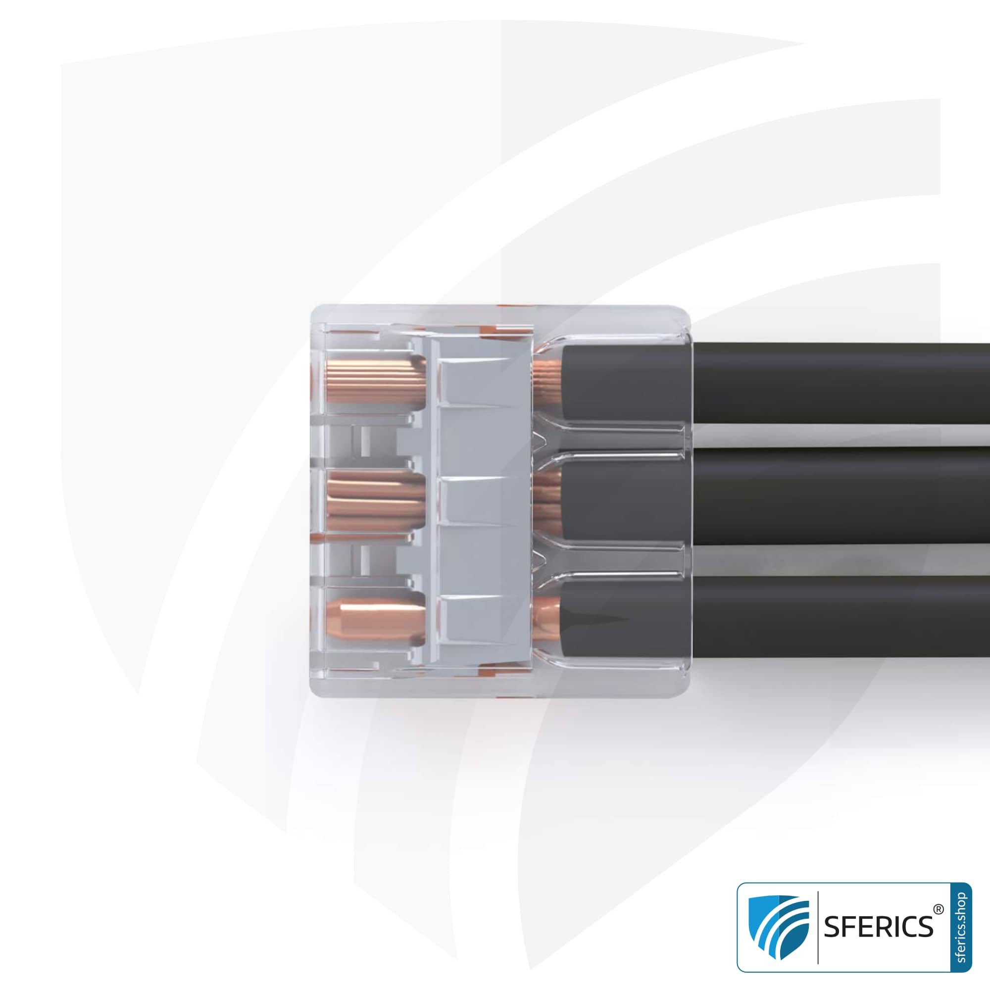 The shielded flush-mounted box or cavity wall box contains a potential connection line. This line must be connected to the two-wire of the shielded electric cable or sheathed cable and this splicing connector (as well as the 2-conductor variant) can be used for this purpose. A simple, fast and effective solution.